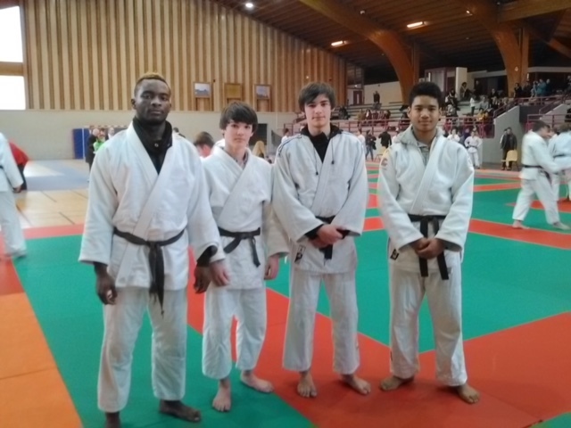 Championnat départemental cadet : Junior 2ème, Enguerran 3ème 4 judokas du club du Faucigny ont participé au championnat départemental Haute Savoie cadet à Sallanches ce samedi 27 janvier 2018. Dans la catégorie -81 kg (7 participantes répartie en 2 poules), Junior Zang perd son premier de poule ippon sur étranglement. Il gagne les 2 autres combats par ippon qui lui permet de se qualifier pour les ½ finale. En ½ finale, Junior marque wazari en début de combat, puis ippon sur immobilisation. En finale, malgré plusieurs tentatives de mouvements d’épaule, Junior n’arrive pas à déséquilibrer son adversaire. A mi-combat, à cours de conditions, Junior n’arrive pas à éviter les attaques de son adversaire et perd par 2 wazari. Dans la catégorie -73kg (8 particpants) Mami Niana gagne son premier combat de poule ippon sur immobilisation. Mais perd les 2 suivants ippon. Classé 3ème de sa poule, il n’est pas qualifié pour les ½ finale. Dans la catégorie -66 kg (13 participants), en 1/8 de finale, Ludovic Bocquet prend l’avantage wazari en début de combat. Il résiste ensuite aux tentatives d’étranglement mais à 45 secondes de la fin du combat il perd ippon. Son adeversaire perdant au prochain tour (1/4 de finale), Ludovic n’est pas repeché. Dans la catégorie -55kg (3 participants), Enguerran Collot perd ses 2 combats par ippon. Enguerran est classé 3ème. Félicitations pour ces 4 judokas et plus particulièrement à Junior qualifié pour les ½ finale du championnat de France cadet du 24 février 2017 à La Motte Servolex et à Mamy Niana qui marque ces 10 premiers points pour la ceinture noire.